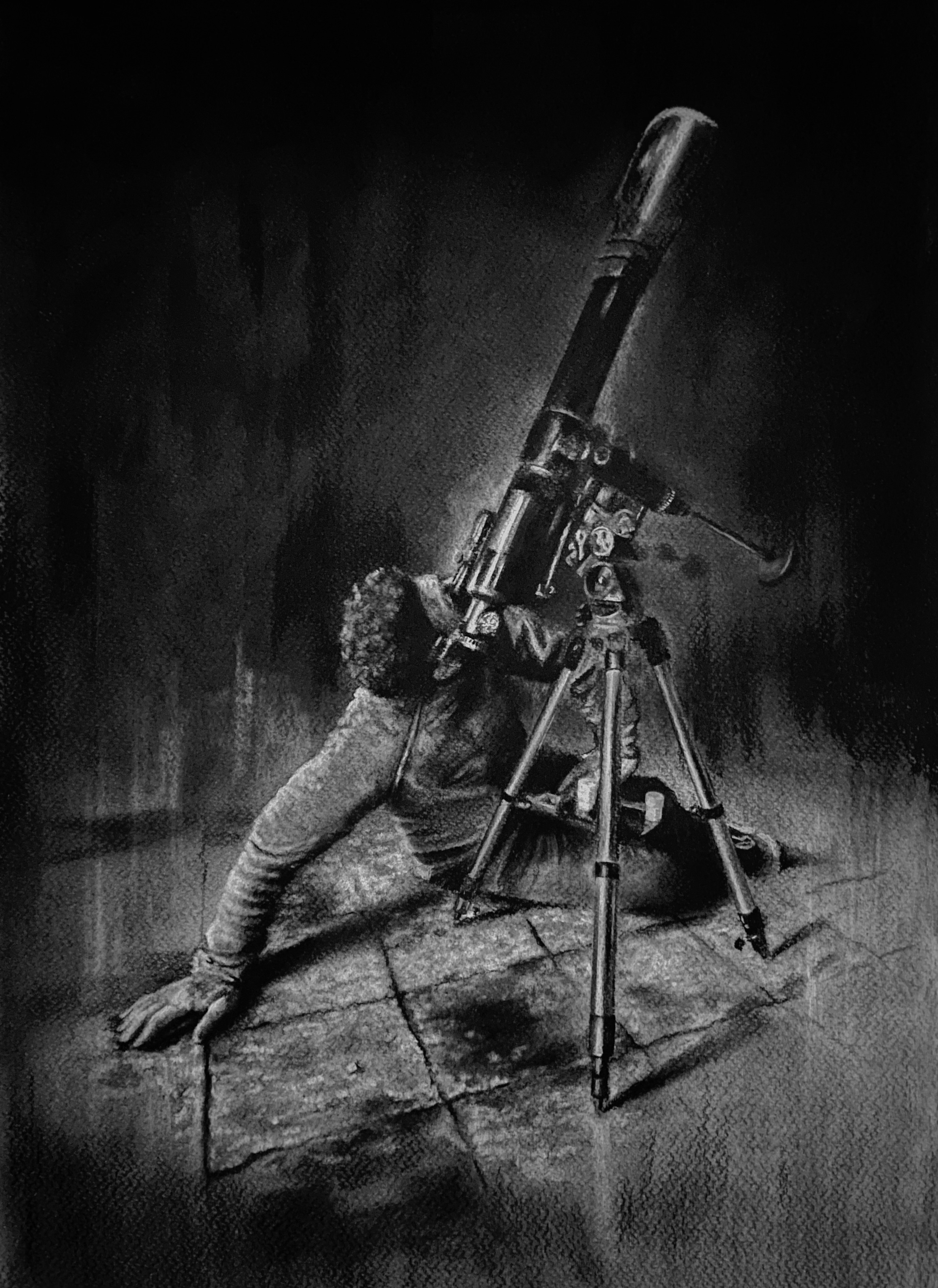 Les acanthes, fusain sur papier, 56 x 76 cm, 2023Le téléscope, fusain sur papier, 48 x 36 cm, 2023Le couloir de Navidson, fusain sur papier, 48 x 36 cm, 2023L’arrivée, fusain sur papier, 100 x 150 cm, 2022-2023.Culture (L’aquarium), fusain sur papier, 48 x 36 cm, 2023Le plongeur confiné, fusain sur papier, 56 x 76 cm, 2022, collection particulièreÉtude pour l’Arrivée, fusain sur papier, 29,7 x 42 cm, 2022La lecture de la carte, fusain sur papier, 24 x 32 cm, 2019Les Gants, Fusain sur papier, 180 x 150 cm, 2019.Le bureau de l’écrivain, Fusain sur papier, 48 x 36 cm, 2020, collection particulièreLe gramophone, Fusain sur papier, 150 x 150 cm, 2020.Culture, Fusain sur papier, 56 x 76 cm, 2020.Pas de panique I, Fusain sur papier, 230 x 300 cm, 2019.Pas de panique III, Fusain sur papier, 230 x 300 cm, 2019.Pas de panique II, Fusain sur papier, 230 x 300 cm, 2019.Le petit gardien, crayons et fusain sur papier, 29,7 x 42 cm, mai 2018, collection particulièreFantôme, fusain sur papier, 105 x 150,5 cm, 2019Piscine, Fusain sur papier, 56,5 x 76 cm, 2017.Sea of plastic, Technique mixte sur papier, 29,7 x 42 cm, août 2018.Étude pour Le plongeur confiné, Encre de chine sur papier, 32 x 24 cm, 2020.Sea of plastic III, encre et pastels à l’huile sur papier, x 29,7 x 23,5 cm, 2018.Sea of plastic II, encre et pastels à l’huile sur papier, x 29,7 x 42 cm, 2018.Piscine, encre sur papier, 47 x 65 cm, 2017Dialogue atelier II, Fusain sur papier, 61,5 x 45 cm, janvier 2018.Même pas peur, Fusain sur papier, 58 x 76 cm, janvier 2018.Duel, Fusain sur papier, 105 x 75 cm, 2017.Les plongeurs, acrylique sur papier, 24 x 32 cm, 2011.Étude pour Fukushima, aquarelle et feutre sur papier, 14,7 x 21 cm, 2011.Fukushima (Chien), acrylique sur papier, 21 x 29,7 cm, 2011.Étude pour Fukushima I (Autoportrait en combinaison), acrylique sur papier, 29,7 x 21 cm, 2011.Étude pour Fukushima (Autoportrait aux poissons), acrylique sur papier, 24 x 32 cm, 2011Accident Fukushima, acrylique sur papier, 29,7 x 21 cm, 2011.Accident Fukushima, acrylique sur papier, 21 x 29,7 cm, 2011.